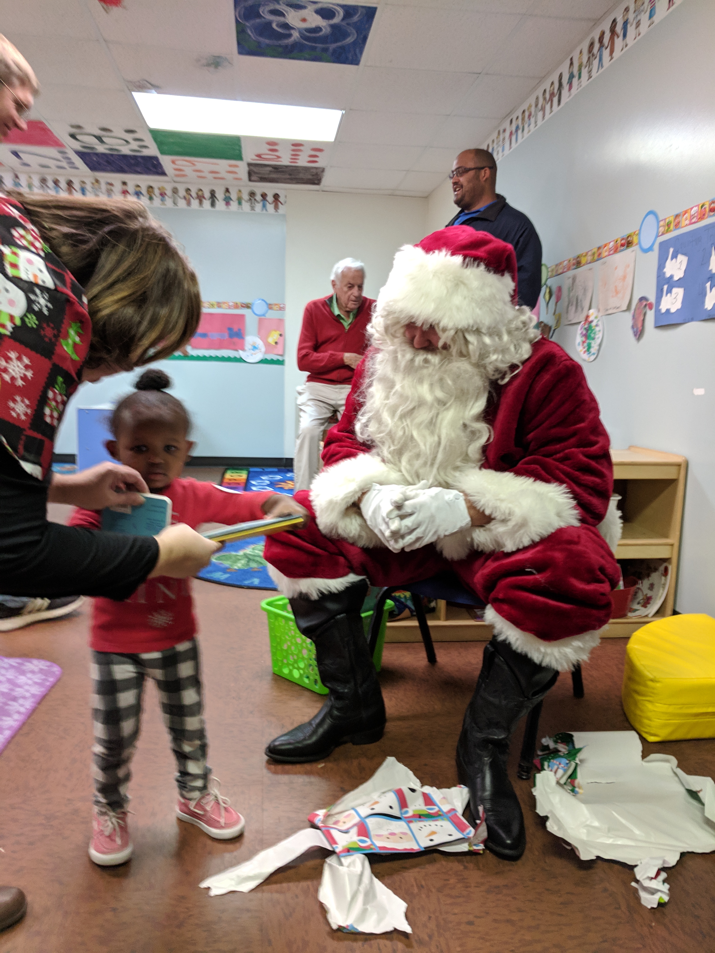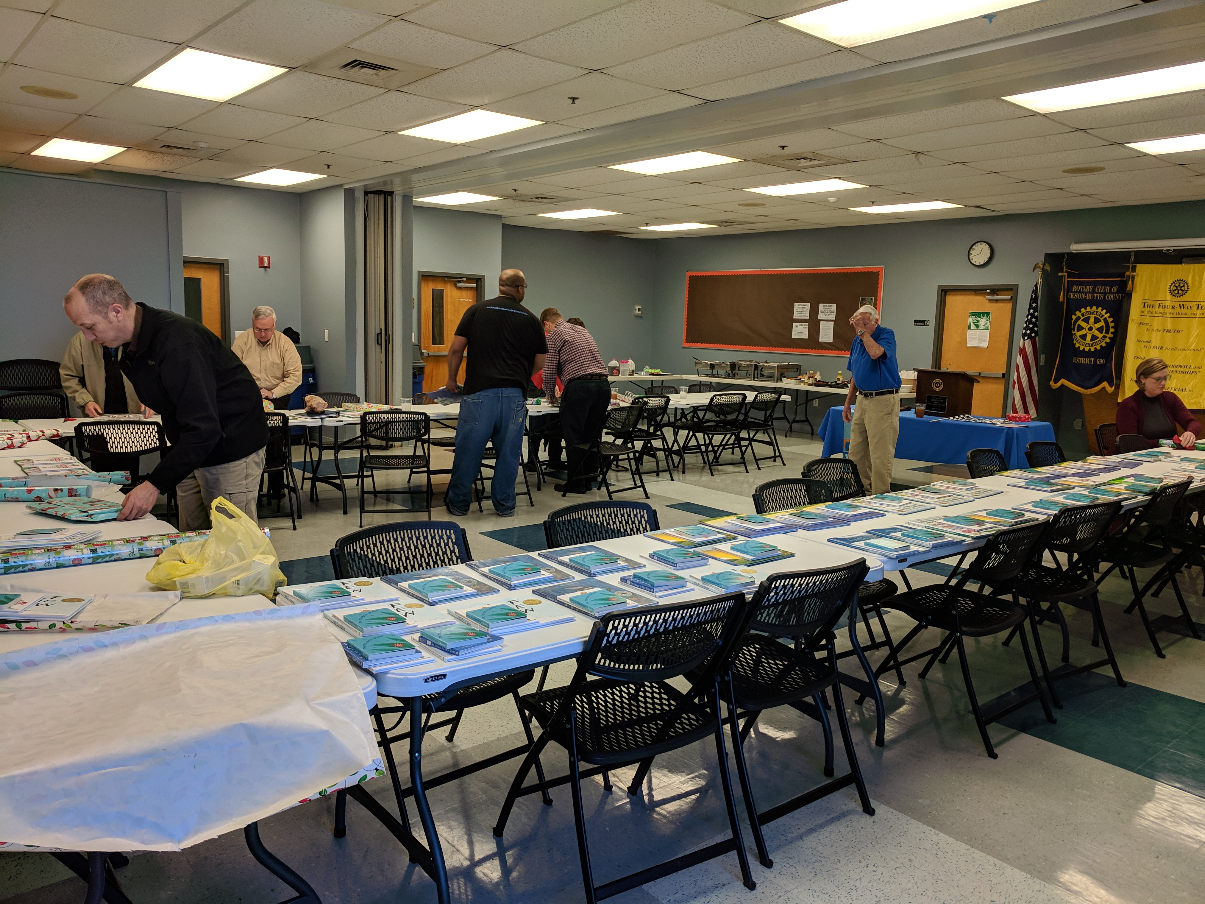 The Jackson-Butts County Rotary Club promotes childhood literacy by providing new books for Christmas. The club held a "wrap party" during a regular meeting and turned 150 quality, award-winning children's books into fun gifts for pre-school age kids at the McIntosh Trail Head Start school. Later that week, club members and Santa (also a fellow Rotarian) met at the school to help personally hand out the gifts to the kids in each classroom. We also purchased and donated 50 books to the City of Jackson for their "Christmas with Santa" event.